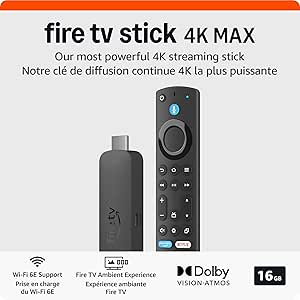 Amazon Fire TV Stick 4K Max (newest model), streaming device, supports Wi-Fi 6E, free & live TV without cable or satellite. Fonctionne bien mais pas beaucoup de mémoire donc si trop d'apps d'installer sa gèle et bug! Ancienne génération non recommandé!