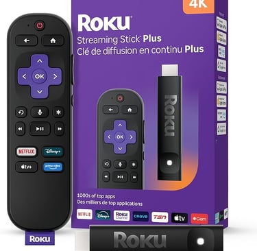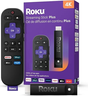 Roku® Streaming Stick™ Plus 2025 – 4K and HDR Roku Streaming Device for TV with Voice Remote – Free and Live TV Non compatible avec application Tivimate